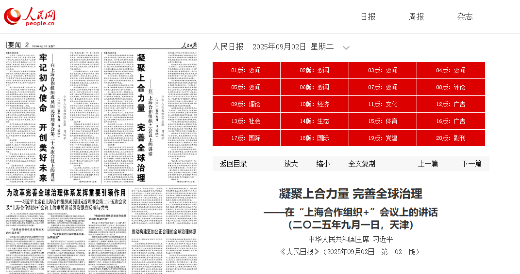 “執(zhí)大象,天下往?!痹龠^兩天,中方將在北京隆重舉行紀(jì)念中國人民抗日戰(zhàn)爭暨世界反法西斯戰(zhàn)爭勝利80周年活動,很多同事都將出席。中方愿同各方一道,勇?lián)罅x、篤行大道,弘揚正確二戰(zhàn)史觀,堅定維護(hù)二戰(zhàn)勝利成果,讓推進(jìn)全球治理體系變革、推動構(gòu)建人類命運共同體的成果更多更好造福全人類!
