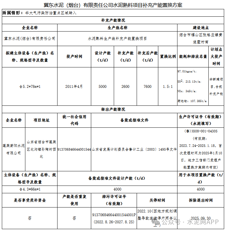 9月2日,山東省工信廳發(fā)布“關于冀東水泥(煙臺)有限責任公司水泥熟料生產(chǎn)線補充產(chǎn)能置換方案的公示”。