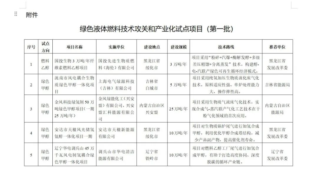 綠色液體燃料是以可持續(xù)航空燃料(SAF)、可持續(xù)柴油、生物燃料乙醇、綠色甲醇、綠氨等為代表的低碳燃料。為落實(shí)黨中央、國務(wù)院有關(guān)決策部署,保障能源安全,促進(jìn)綠色轉(zhuǎn)型,推動綠色液體燃料領(lǐng)域新技術(shù)、新模式、新業(yè)態(tài)發(fā)展,培育能源領(lǐng)域新質(zhì)生產(chǎn)力,增強(qiáng)發(fā)展新動能,經(jīng)組織專家評審、復(fù)核和公示,原則同意國投生物3萬噸/年纖維素燃料乙醇等9個(gè)項(xiàng)目開展綠色液體燃料技術(shù)攻關(guān)和產(chǎn)業(yè)化試點(diǎn)工作,現(xiàn)將有關(guān)事項(xiàng)通知如下。