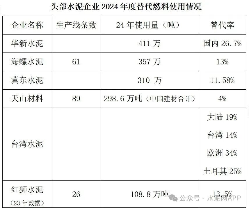 2024 年全年替代燃料和原材料(AFR)采購量達到 180 余萬噸。(注:僅僅是采購量)