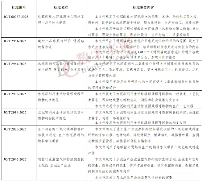 日前,工業(yè)和信息化部科技司發(fā)布《117項(xiàng)行業(yè)標(biāo)準(zhǔn)報(bào)批公示》顯示,根據(jù)行業(yè)標(biāo)準(zhǔn)制修訂計(jì)劃,相關(guān)標(biāo)準(zhǔn)化技術(shù)組織已完成的34項(xiàng)建材行業(yè)標(biāo)準(zhǔn)中包括七項(xiàng)水泥行業(yè)相關(guān)標(biāo)準(zhǔn),分別是:鐵鋁酸鹽水泥混凝土在海洋工程中應(yīng)用技術(shù)規(guī)范、建材產(chǎn)品水足跡評價(jià) 通用硅酸鹽水泥、水泥窯煙氣二氧化碳捕集純化技術(shù)規(guī)范 第1部分:化學(xué)吸收、水泥窯利用生活垃圾預(yù)處理可燃物技術(shù)規(guī)范、水泥窯利用生活垃圾預(yù)處理可燃物制備技術(shù)規(guī)范、基于項(xiàng)目的二氧化碳減排量評估技術(shù)規(guī)范 生產(chǎn)水泥熟料的燃料替代項(xiàng)目、建材行業(yè)溫室氣體排放核查技術(shù)規(guī)范 水泥生產(chǎn)企業(yè)。