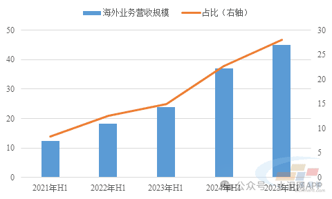 圖:2025年上半年華新水泥海外業(yè)務營收規(guī)模及占比(單位:億元、%)