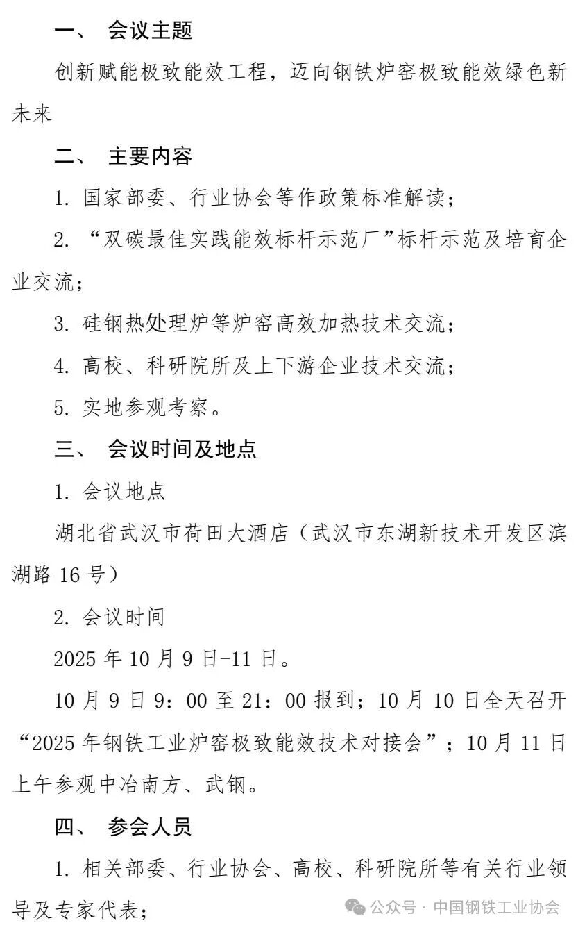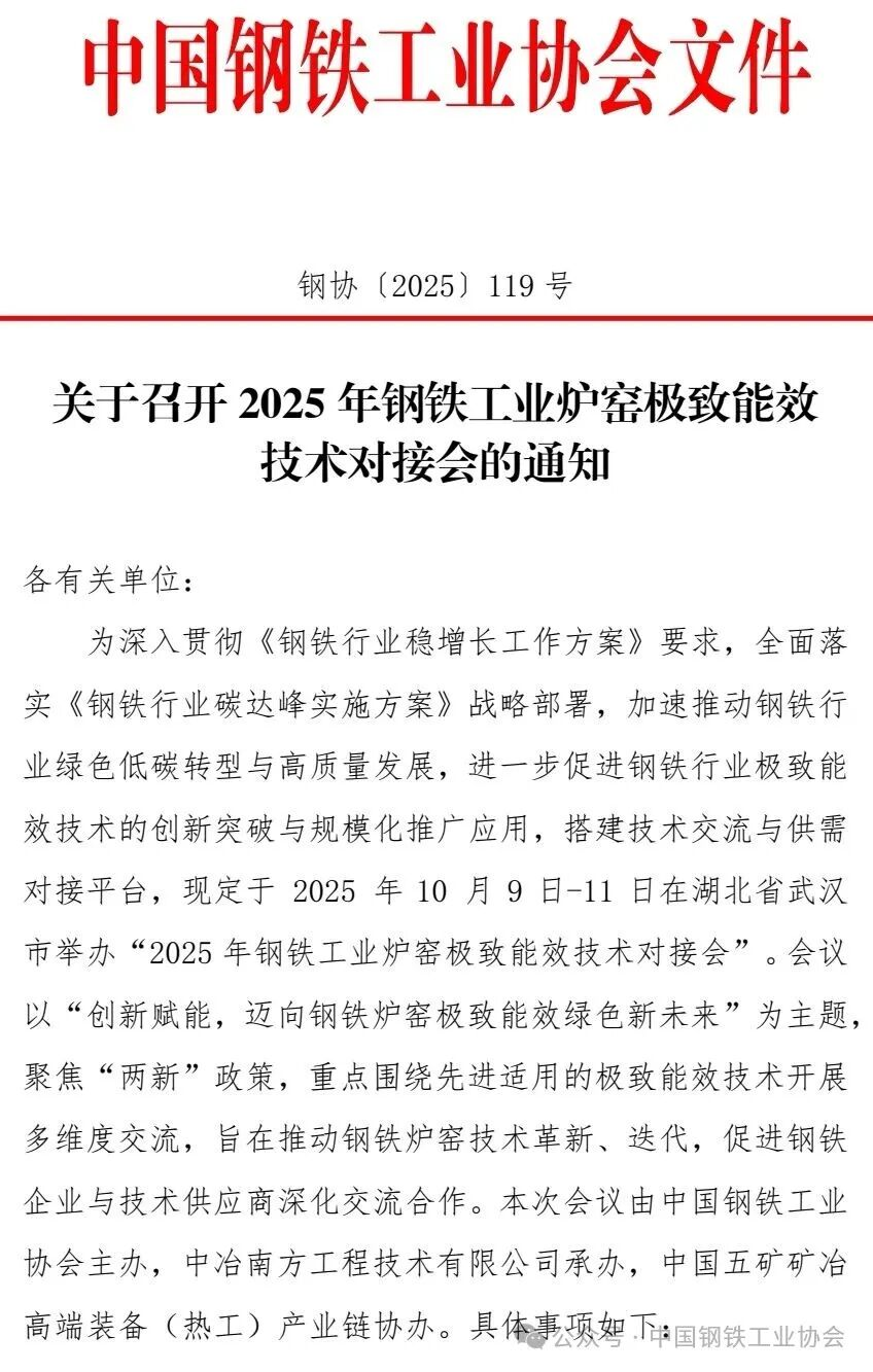 關(guān)于召開2025年鋼鐵工業(yè)爐窯極致能效技術(shù)對接會的通知