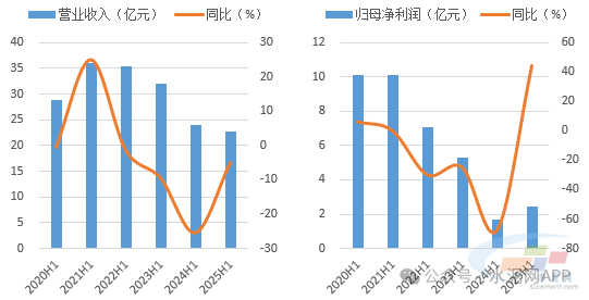 圖1、2:2025年上半年上峰水泥營收、利潤走勢
