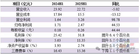 表1:2025年上半年上峰水泥主要財務(wù)指標