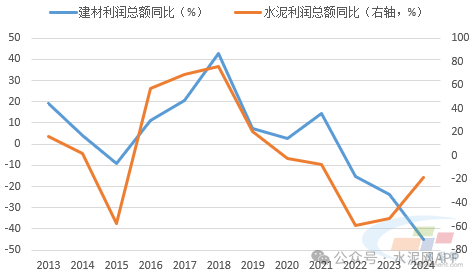 從近12年數(shù)據(jù)看,水泥行業(yè)利潤總額同比走勢與建材整體基本一致,2022-2024年,水泥行業(yè)利潤大幅下滑,是拖累建材行業(yè)連續(xù)三年持續(xù)下降的主要因素,因此水泥實現(xiàn)穩(wěn)增長對整個建材行業(yè)穩(wěn)增長至關重要。