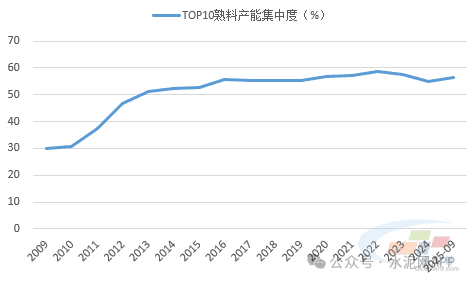 圖3:前十企業(yè)熟料產(chǎn)能集中度走勢