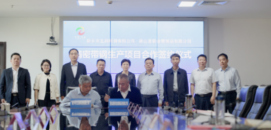 9月29日上午,新鄉(xiāng)市玉潤科創(chuàng)有限公司與唐山港聯(lián)金屬制品有限公司合作的港聯(lián)精密帶鋼生產項目簽約儀式在鳳泉區(qū)舉行。唐山港聯(lián)金屬制品有限公司董事長孟德龍、新鄉(xiāng)市玉潤科創(chuàng)有限公司總經理王玉軍、新鄉(xiāng)農商行鳳泉支行行長賈萬丁及區(qū)直相關部門負責人出席活動,區(qū)委書記楊潔主持儀式,區(qū)長丁文廣、副區(qū)長耿建偉參加。