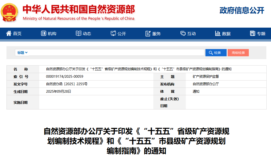 為加強部省銜接,指導(dǎo)做好省市縣各級礦產(chǎn)資源規(guī)劃工作,依據(jù)《礦產(chǎn)資源法》和《礦產(chǎn)資源規(guī)劃編制實施辦法》,按照《自然資源部辦公廳關(guān)于開展“十四五”礦產(chǎn)資源規(guī)劃總結(jié)評估及“十五五”規(guī)劃編制工作的通知》(自然資辦發(fā)〔2025〕19號)要求,部研究制定了《“十五五”省級礦產(chǎn)資源規(guī)劃編制技術(shù)規(guī)程》和《“十五五”市縣級礦產(chǎn)資源規(guī)劃編制指南》,現(xiàn)印發(fā)給你們,請參照執(zhí)行。